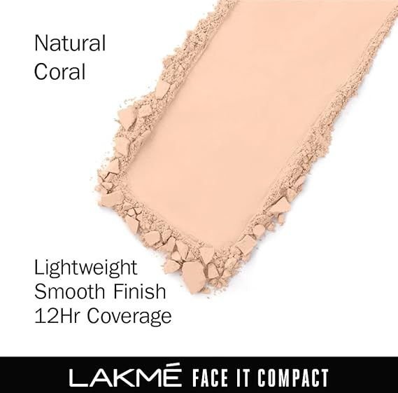 Lakmé compact powder is a lightweight makeup product that provides a smooth, matte finish and light coverage to even out skin tone and hide imperfections. It can be used to set foundation, absorb excess oil, and give a shine-free look. Some Lakmé compacts are enriched with skincare ingredients like Vitamin E, Vitamin B3, and Hyaluronic acid to nourish and moisturize the skin, while others offer sun protection. Lakmé compacts offer a light to medium coverage that can be built up for a more flawless finish.