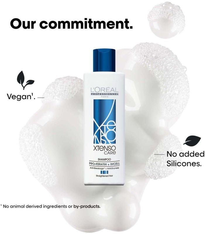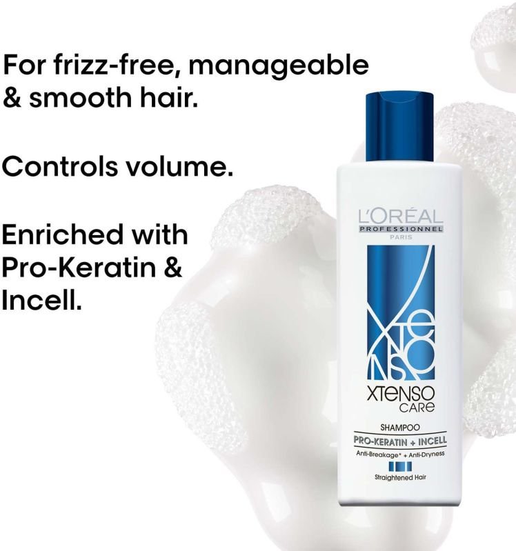 L 'Oréal Professionnel Xtenso Care Shampoo|For straightened hair |Smoothens, nourishes and strengthens hair| With Pro-Keratin and IncellL 'Oréal Professionnel Xtenso Care Shampoo is a nutri-reconstructor shampoo designed for straightened or chemically treated hair. It 's formulated with Pro-Keratin and Incell technology to gently cleanse, deeply nourish, and strengthen the hair fiber. This shampoo helps to maintain moisture levels, reduce breakage, and improve manageability, leaving hair feeling soft, smooth, and frizz-free.